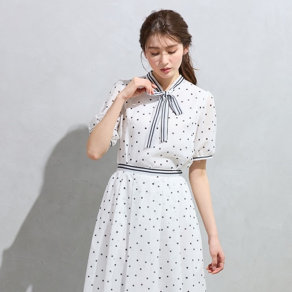 新品☆SHIPSフロッキードット袖レースブラウス*シップス