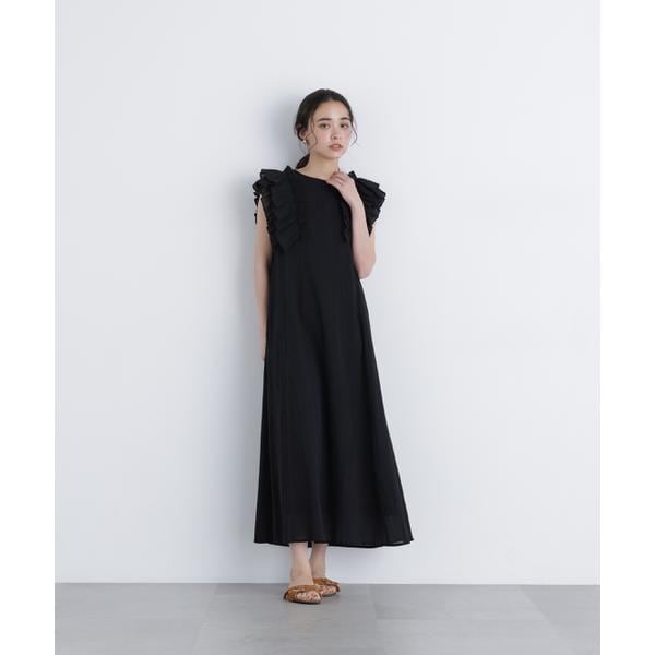 NATURAL BEAUTY BASIC楊柳フリルスリーブワンピースMティアード