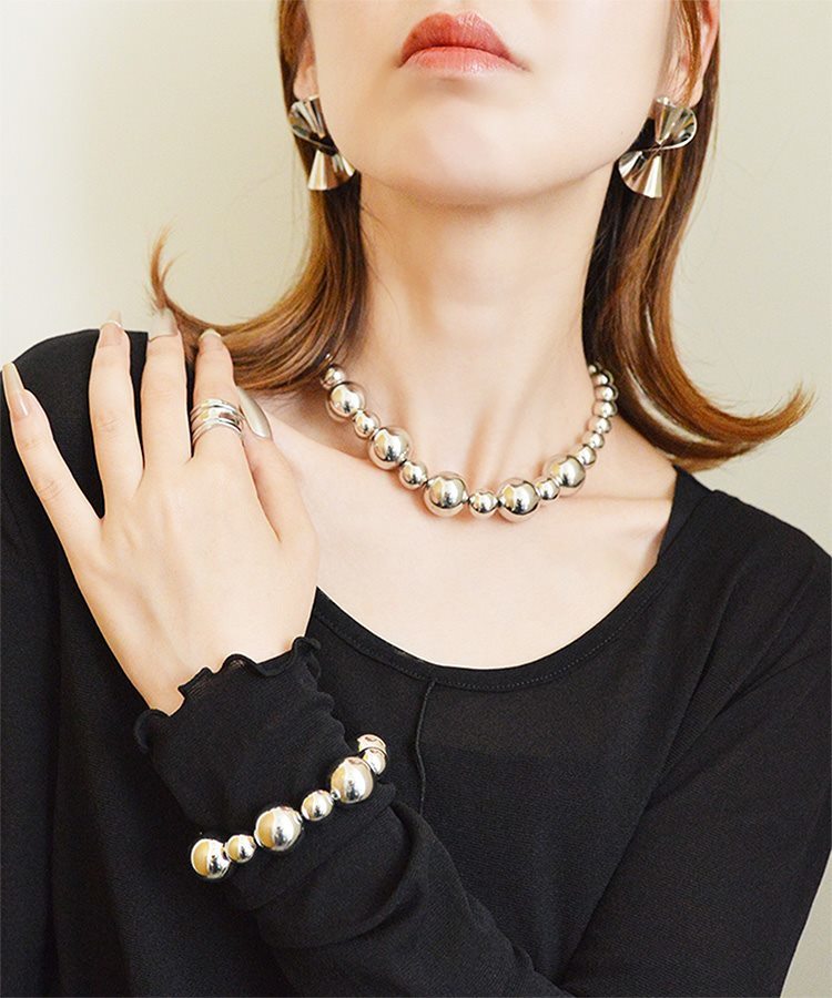 カーブメタル×ミニパール調ビジュースライドネックレス