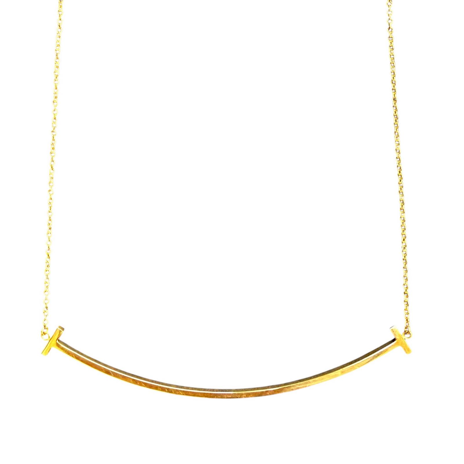 極美品☆TIFFANY&Co. ティファニー ティファニー T スマイル ペンダント AU750(YG) ネックレス イエローゴールド 重量2.8g レディース【中古】