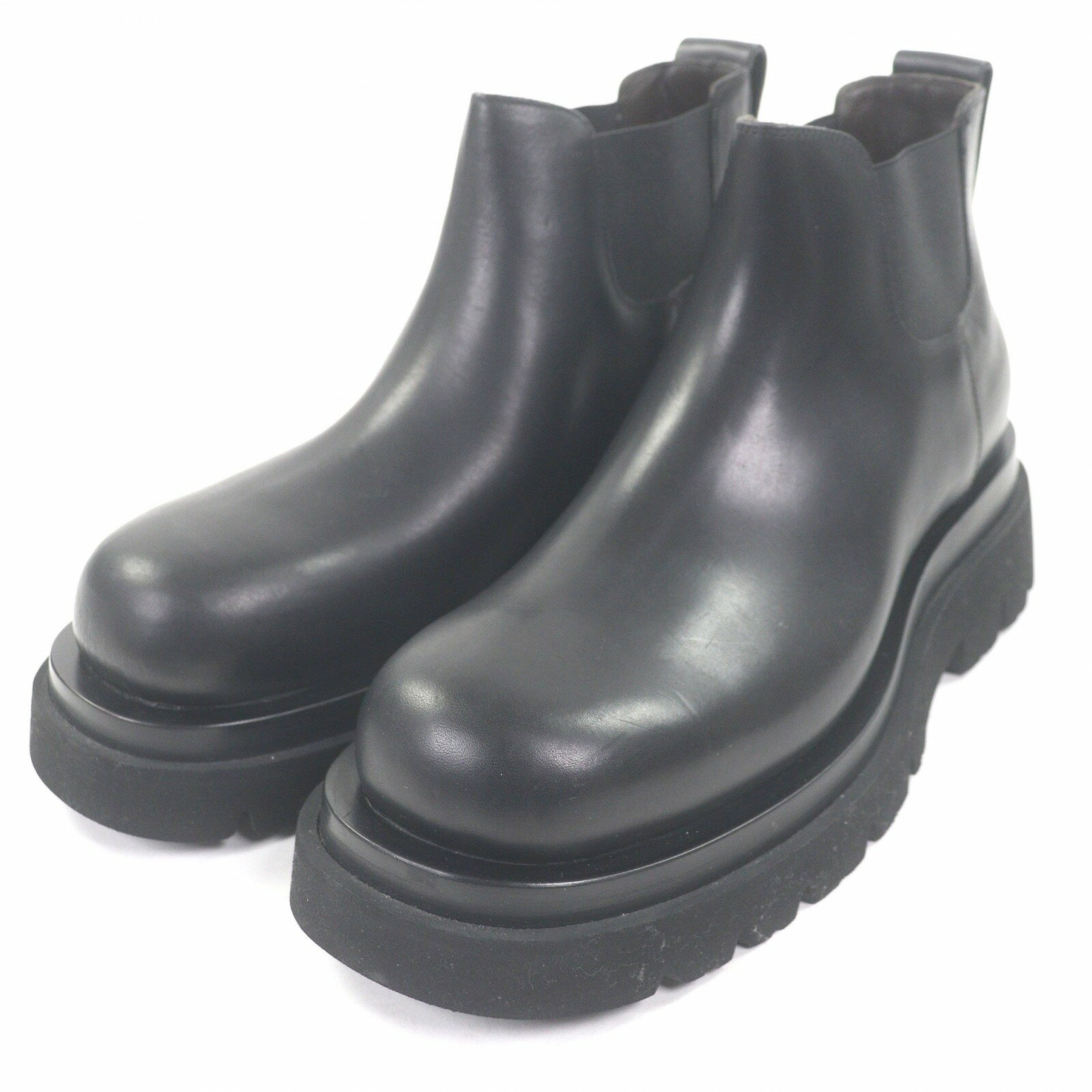 極美品★BOTTEGAVENETA ボッテガヴェネタ タイヤ チェルシーブーツ レザー サイドゴアブーツ ブラック ホワイト 38 イタリア製 レディース【中古】