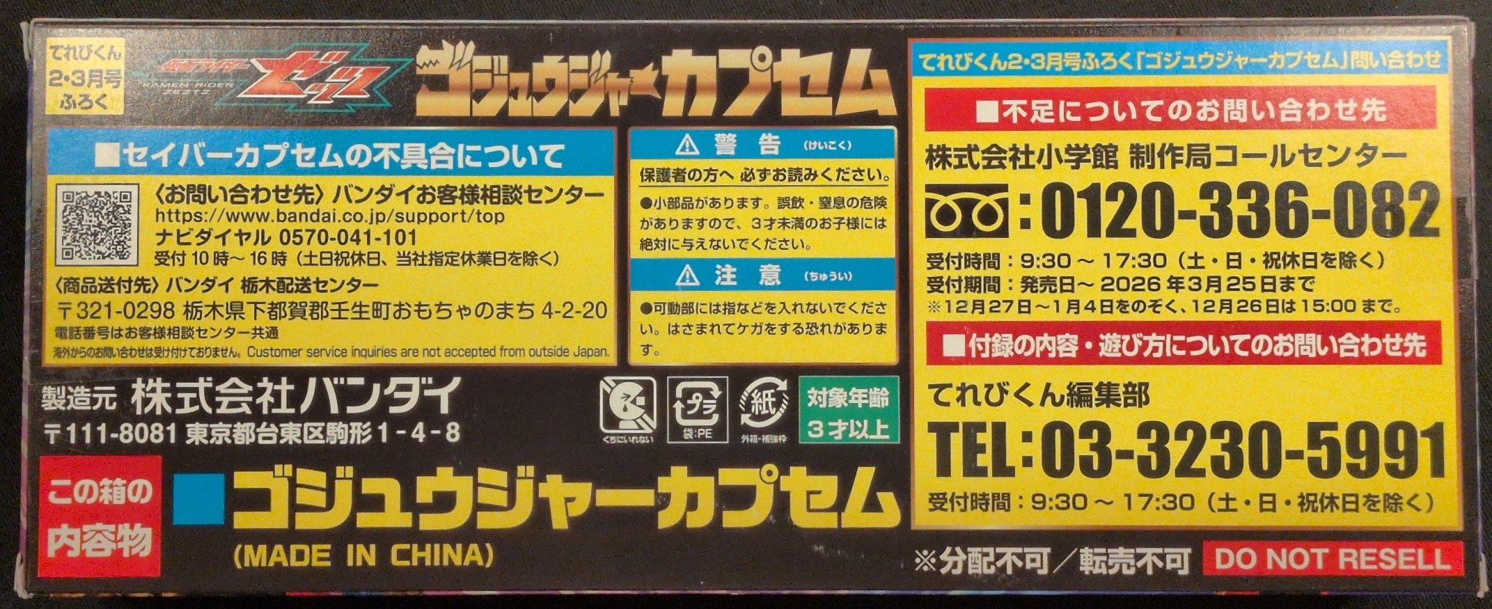 てれびくん2・3月号付録 仮面ライダーゼッツ ゴジュウジャーカプセム