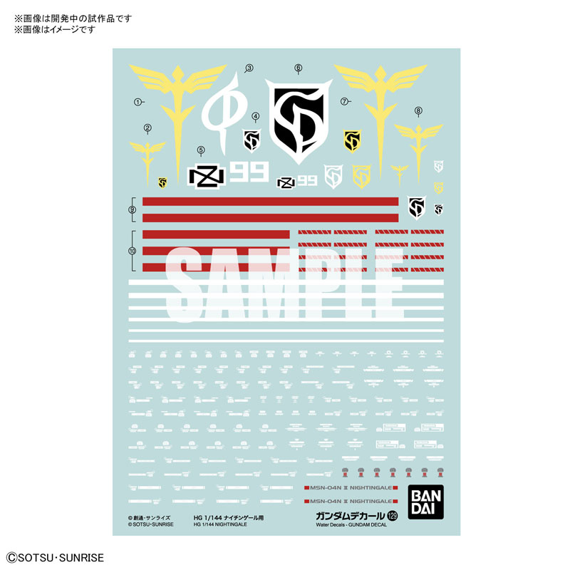 1/144スケールに使用できる水転写式デカールが登場! ■HG 1/144 ナイチンゲール用。 【付属品】 ■水転写式デカール×1