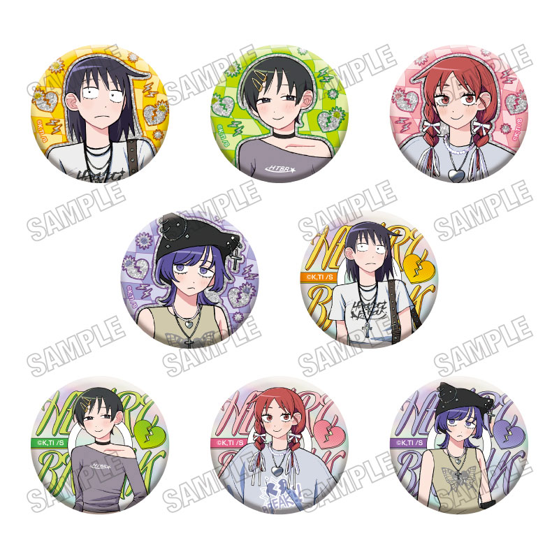1BOX購入で全8種((1)~(4):グリッター仕様+(5)~(8):オーロラ仕様)揃います。 『ふつうの軽音部』より描き下ろし缶バッジコレクション【おめかしver. はーとぶれいく】が登場!