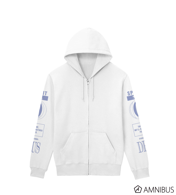 精霊のナンバー、識別名、台詞をジップパーカーに仕上げました。