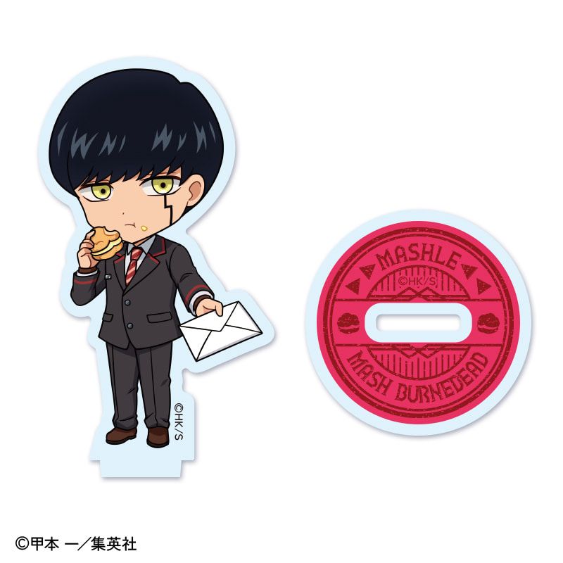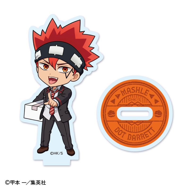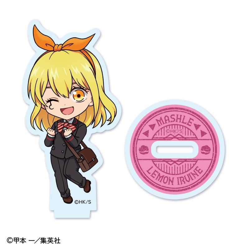 マッシュ、フィン、ランス、ドット、レモンの描き起こしイラストを使ったアクリルスタンドです。