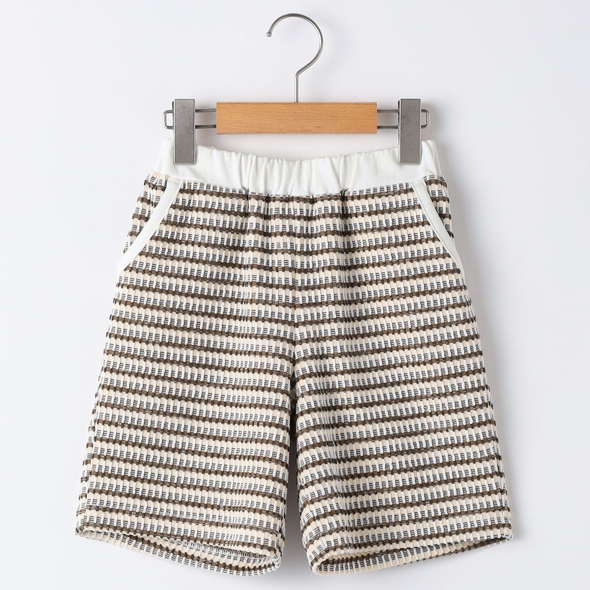 SHIPS Colors プリーツ コンビ 五分袖 ニット ブラウン