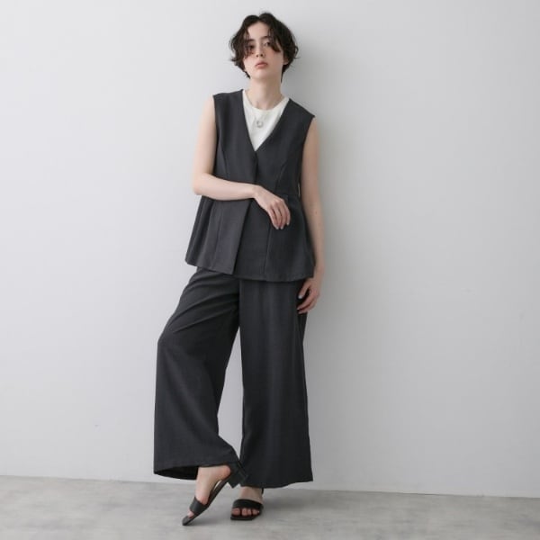 軽やかな素材感が魅力のベスト×パンツのセットアップ。