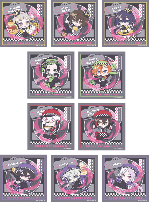 『文豪ストレイドッグス』より、オリジナル描き起こしイラスト「ぱすてるぽっぷ」を使用したステッカーコレクション「ぺたコレクション」です。全体にオーロラ加工の入った素材を使用し、イラストの魅力を最大限に演出します。