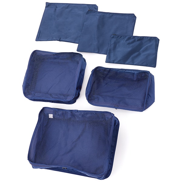 色々な用途に使えるトラベルポーチ6点セットです。マチ付きオーガナイザーが3点、マチ無しのポーチ3点入りの合計6セット。オーガナイザーは、厚みのある衣類を入れるのに最適で、フロント部はメッシュタイプとなり中身がすぐに分かりつかいやす。ポーチは、化粧品や理美容品、小物アイテムの収納に最適。