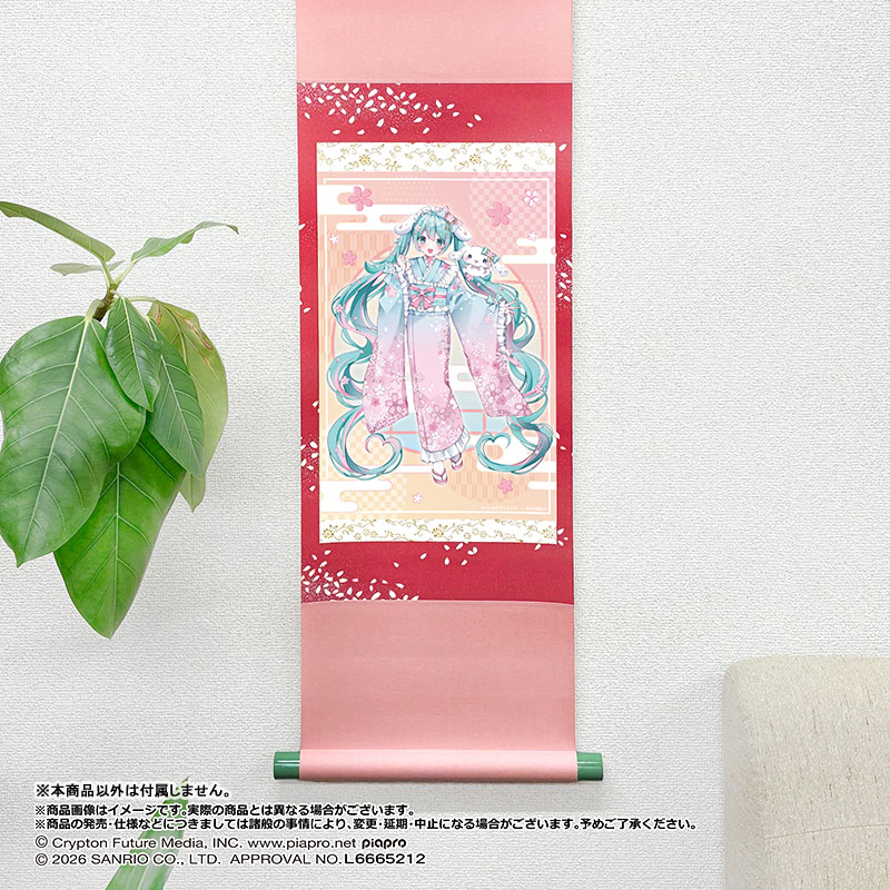 イラストレーターの知花そらさんのイラストを使用した初音ミク×シナモロールの本格的な掛け軸が登場です! 洋室に飾っても馴染む華やかな一品となっています♪