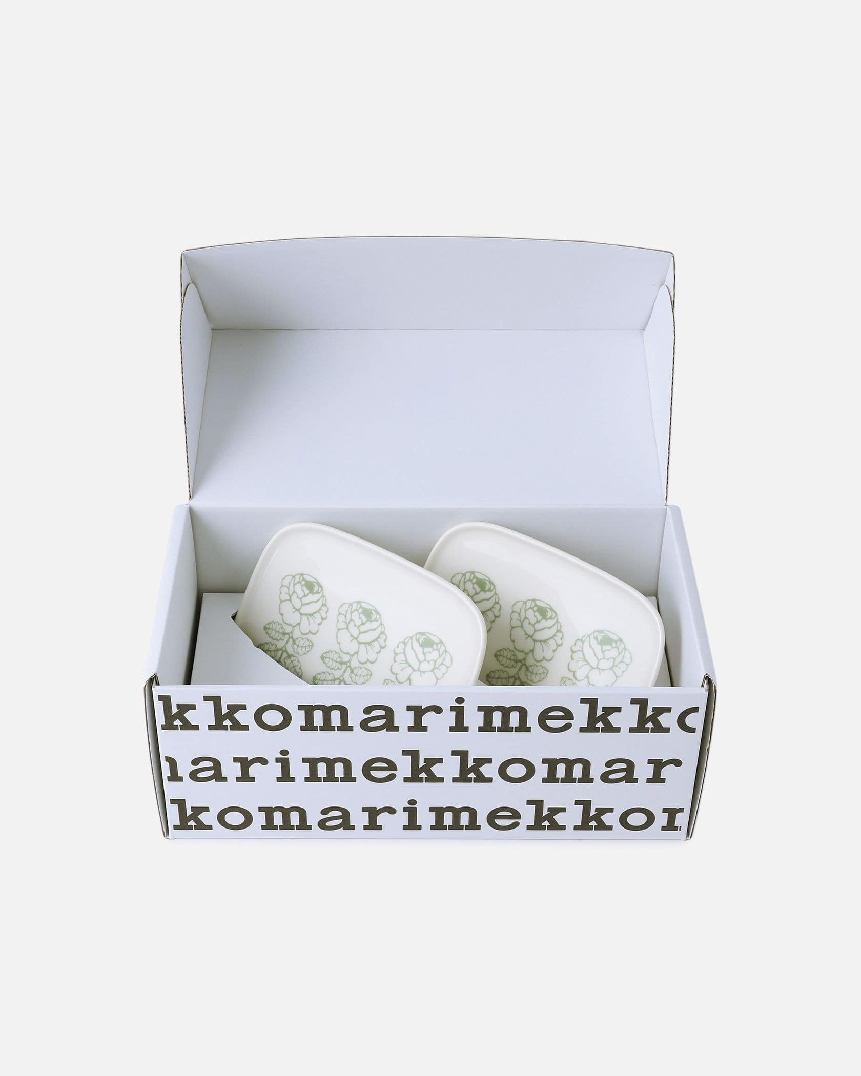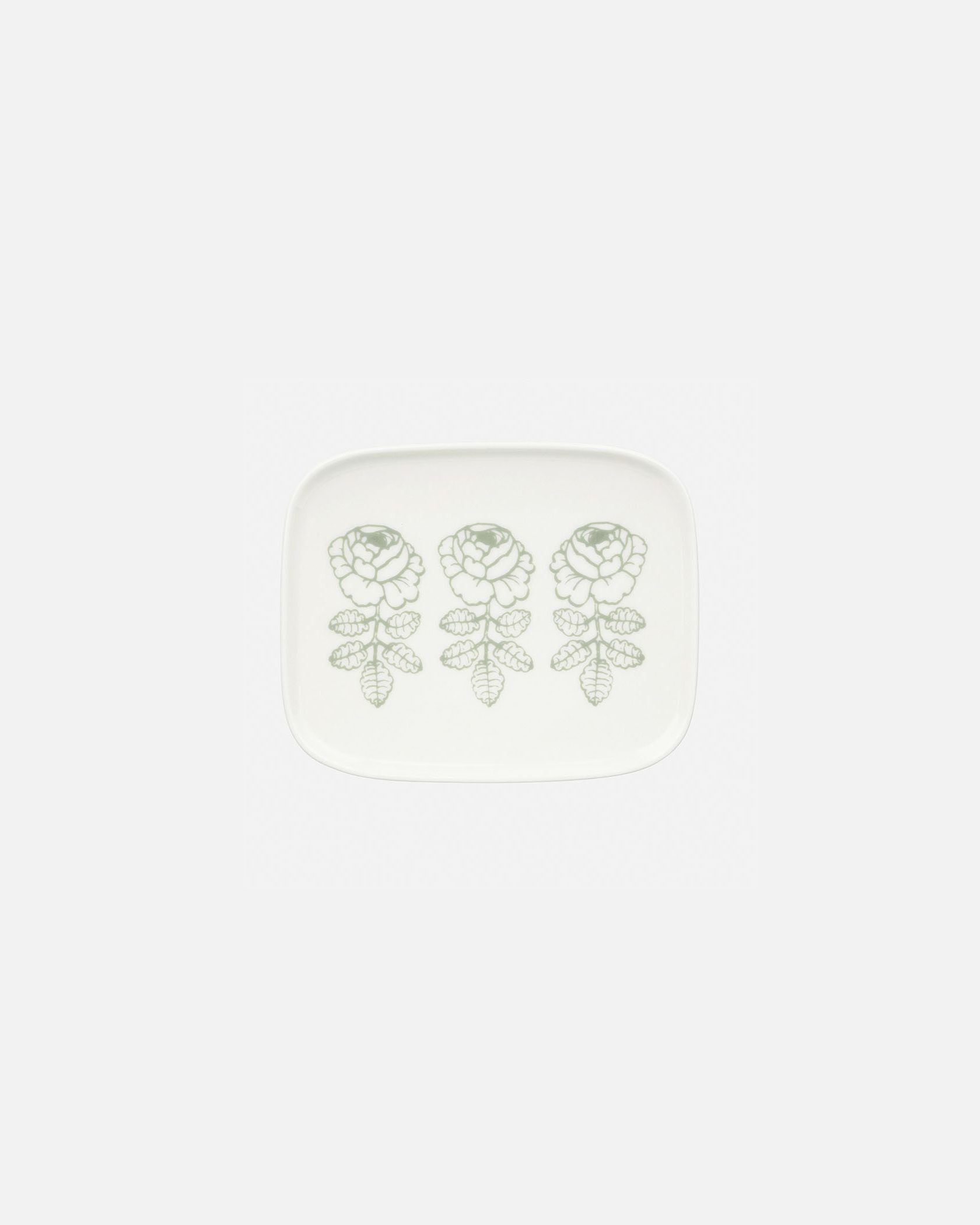 ウェディングローズを意味するVihkiruusu柄のオンライン限定プレートペアセット。どこかレトロなデザインで、和洋問わず様々なテーブルコーディネートに馴染みます。やや小ぶりなスクエア型は、副菜を盛り付けたり、取り分け皿にもぴったり。ご自宅での使用はもちろん、結婚や引越しの贈り物としても喜ばれるアイテムです。