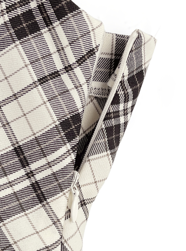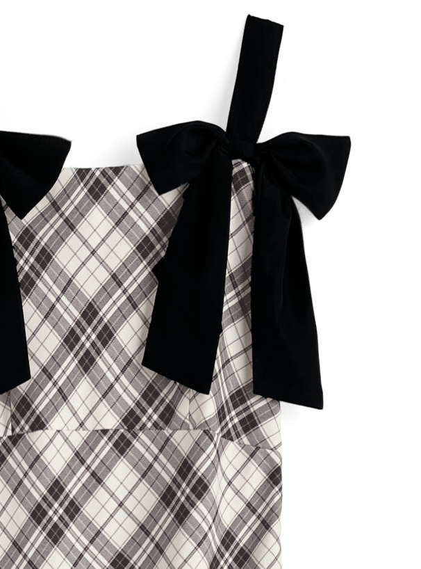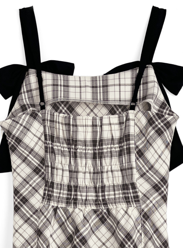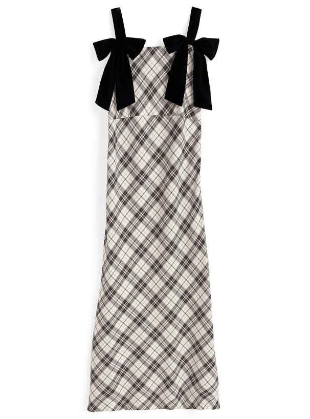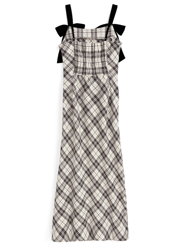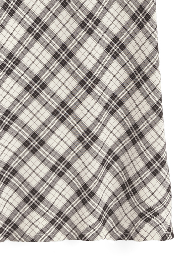 生地を斜めに取ったバイアスチェック柄が印象的なワンピース。