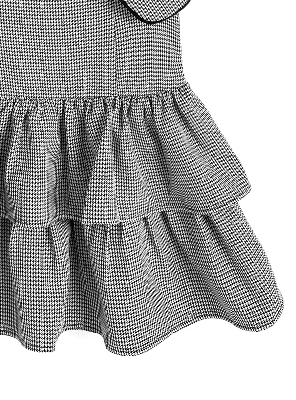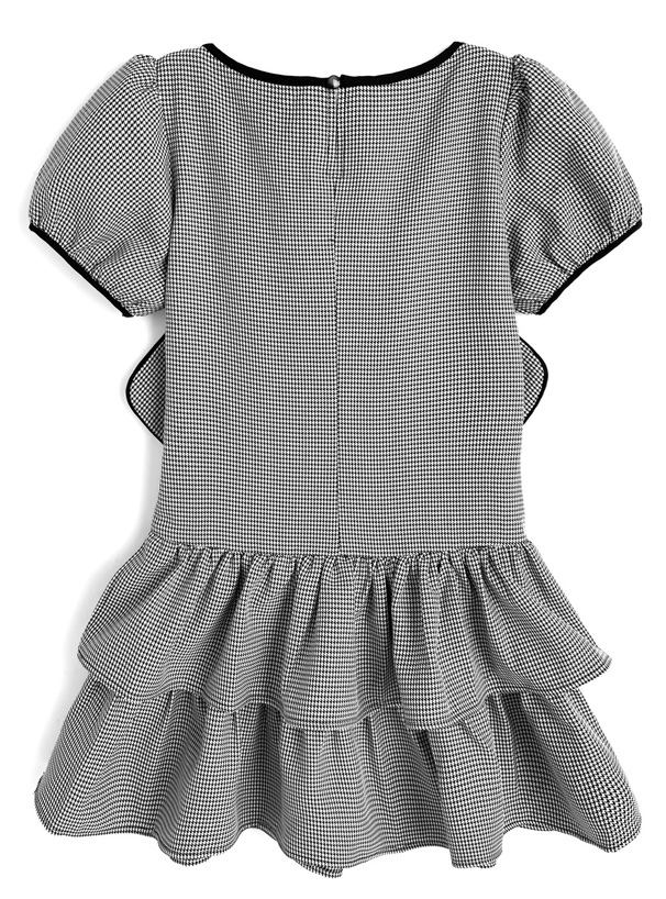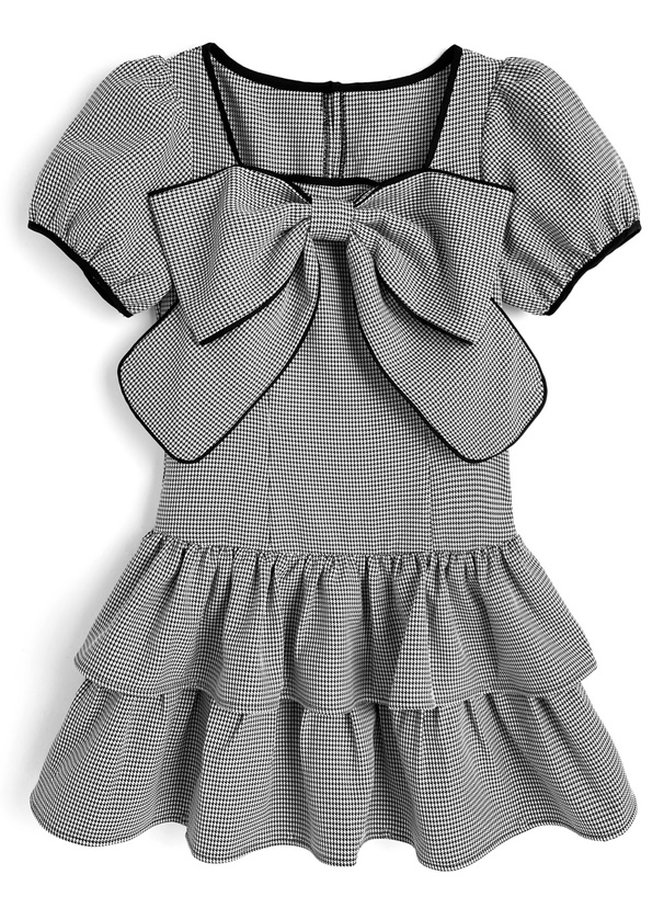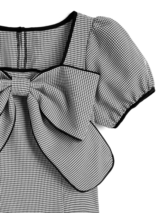 配色リボン千鳥柄パフスリーブミニワンピース[tg851]