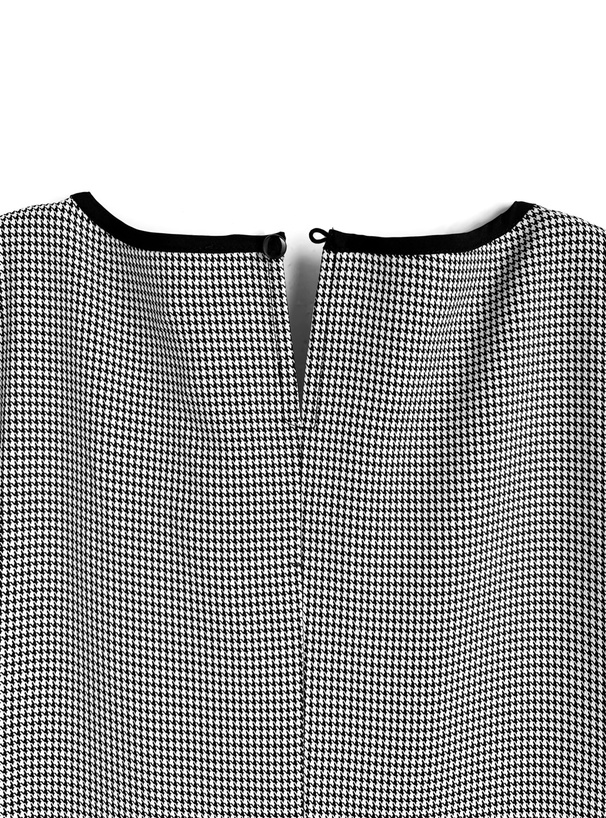 千鳥格子柄チュニック フレア袖ワンピース モノトーン 総柄 細身 Z8517