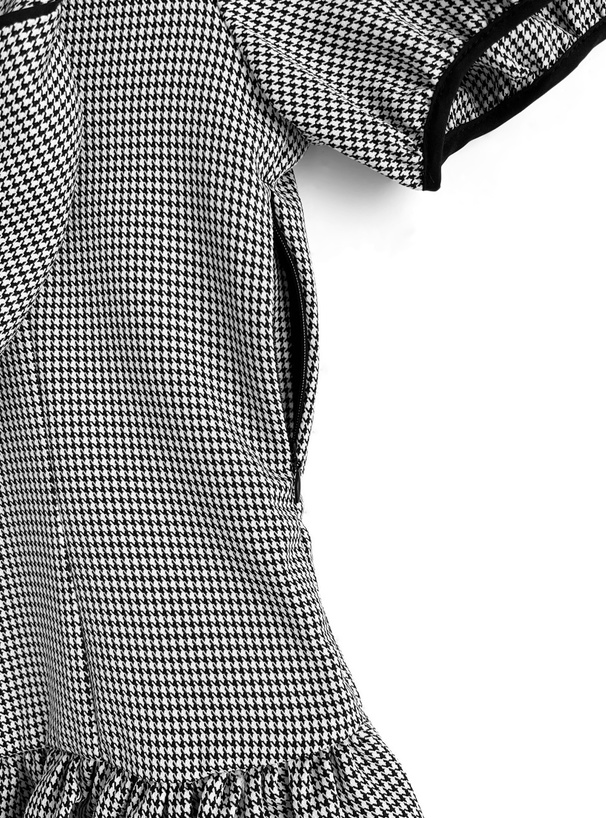 バルーンスリーブ千鳥柄タックミニワンピース[tg725]