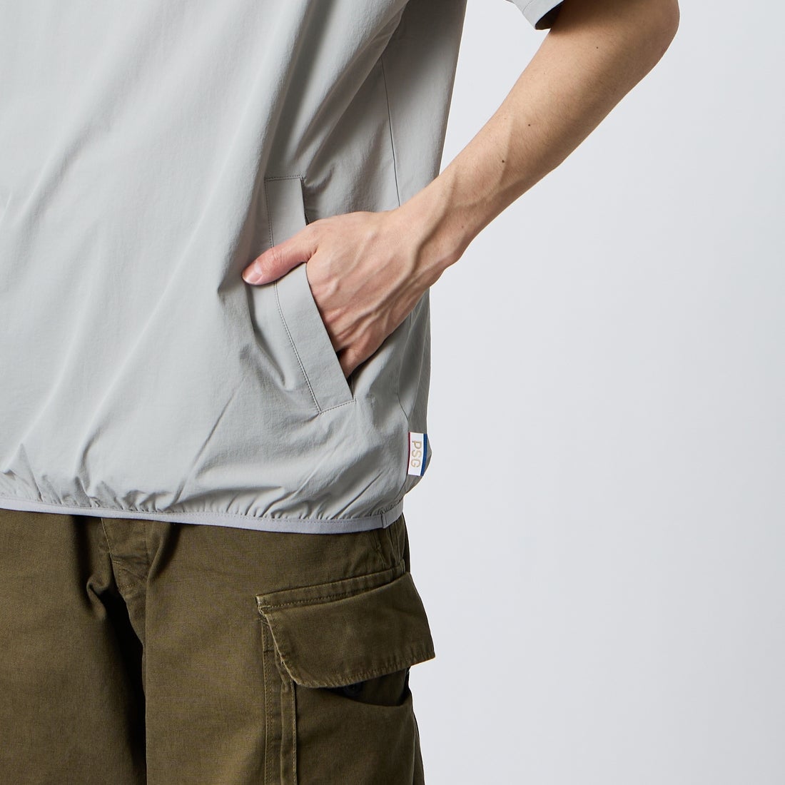 世界中で人気を集めるフランスのサッカークラブ「パリ・サン=ジェルマン」をモチーフにしたTシャツ。ボディと同系色であしらわれたバックプリントがスタイリッシュな印象を与え、シンプルながら存在感のあるデザインに仕上げています。フロント左胸にはエッフェル塔を象徴したサークルロゴのワッペンを配置。Tシャツではめずらしいポケット付きで、小物の収納にも便利な実用性を備えています。左サイドのPSGピスタグがさりげないアクセントに。やや肩を落としたリラックスシルエットで、首元のリブや裾のパイピングデザインが全体をすっきりとした印象にまとめています。素材には軽量でさらりとした肌触りのナイロン生地を使用し、快適な着心地を実現。リブ部分にはストレッチ性のあるコットンポリ素材を採用しています。デニムやチノパン、スウェットパンツとのカジュアルスタイルはもちろん、テック系アイテムとのスポーティな着こなしにもマッチします。