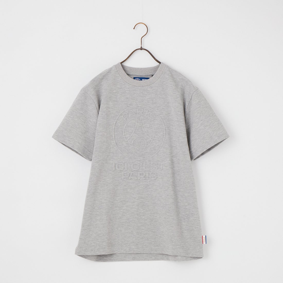 世界中で人気を集めるフランスのサッカークラブ「パリ・サン=ジェルマン」をモチーフにしたショートスリーブTシャツ。フロントにはお馴染みのサークルロゴをデザインし、凹凸感のあるエンボス加工でボディと同色ながら存在感のある仕上がりに。ロゴ下にはチームスローガン「ICI C'EST PARIS」をあしらい、シンプルな中にアクセントを加えています。左サイドのPSGピスタグもさりげないポイント。やや肩を落としたリラックスシルエットで、デニムやチノパン、スウェットパンツなどのカジュアルスタイルと好相性です。ブラックとライトグレーのベーシックなカラー展開で、幅広いコーディネートに取り入れやすい一枚。素材にはコットンとポリエステルをブレンドした肌触りの良い生地を使用し、リブ部分にはストレッチ性のあるコットンポリ素材を採用。デイリーからスポーツ、リラックスシーンまで幅広く活躍します。