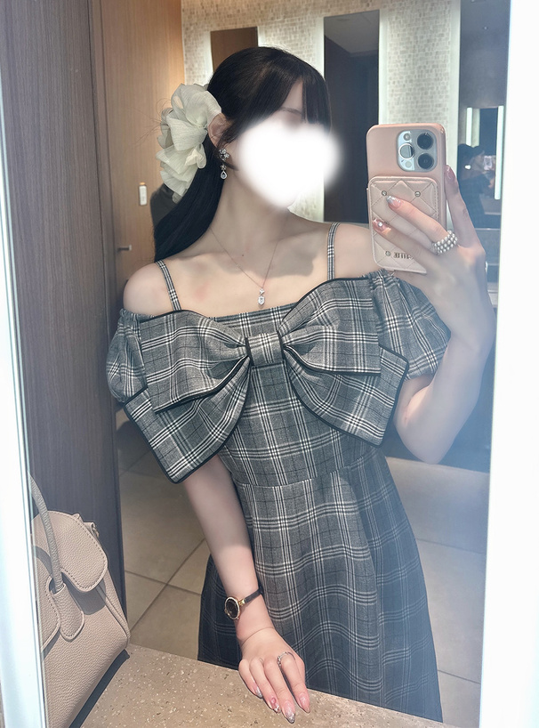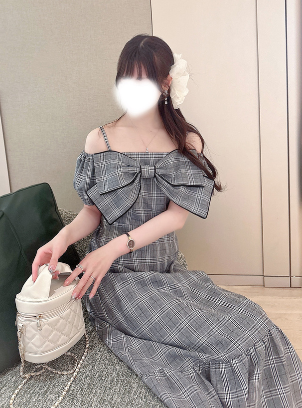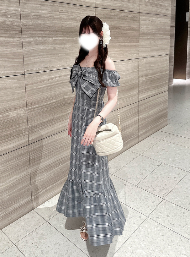 存在感抜群の大きめリボンが周りの視線を釘付けにするワンピース。